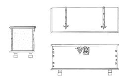 DESCRIZIONE: antica artsón  composta da sei tavole uniche connesse mediante incastri a coda di rondine e chiodi lavorati, munita di piedi torniti; chiudibile mediante due serrature in ferro applicate alla fiancata anteriore.