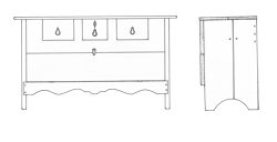 DESCRIZIONE: questa antica credenza in legno di abete si compone di una parte frontale costruita con due grosse tavole: in quella superiore sono ricavati gli alloggiamenti per tre cassetti muniti di maniglie in ferro e, quello centrale, di serratura. Il vano inferiore è chiuso da una tavola ribaltabile. Le fiancate sono formate da due tavole verticali. Il ripiano superiore, composto da due assi, serviva anche come piano la lavoro