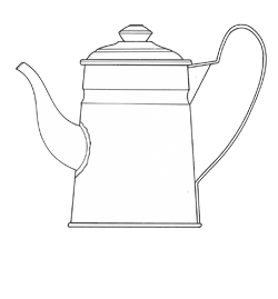 DESCRIZIONE: cuccuma metallica, in latta stagnata, munita di manico, becco e coperchio. Fabbricazione industriale