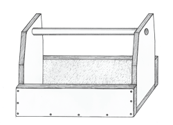 Nella sua forma ridotta, la mangiatoia contenente il becchime consiste in un recipiente costruito con cinque tavolette di legno; le due tavole che formano le pareti minori proseguono oltre il bordo rastremandosi verso l’alto. Nella parte superiore, attraverso due fori, passa il manico formato da un bastone di sezione cilindrica.