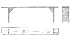 DESCRIZIONE: il sedile è ricavato da un unico asse di legno di larice sommariamente sgrezzato; le gambe sono ricavate da due assi verticali sagomati, del medesimo legno, fissati al sedile mediante incastri