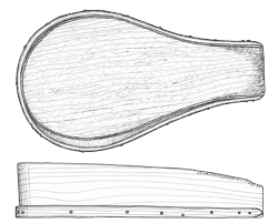 DESCRIZIONE: questo esemplare di routchoù è in legno di larice; bordo, tenuto fisso da una fascetta di legno e inchiodato al corpo dello scolatoio, in legno di olmo