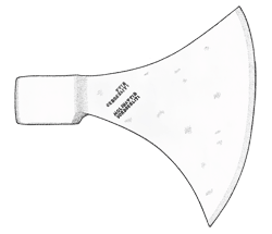 DESCRIZIONE: scure a lama biconvessa con convessità più accentuata nella parte inferiore della lama; al centro, doppio marchio dell’artigiano ottenuto mediante punzonatura (uno incompleto): MOLINATTI B